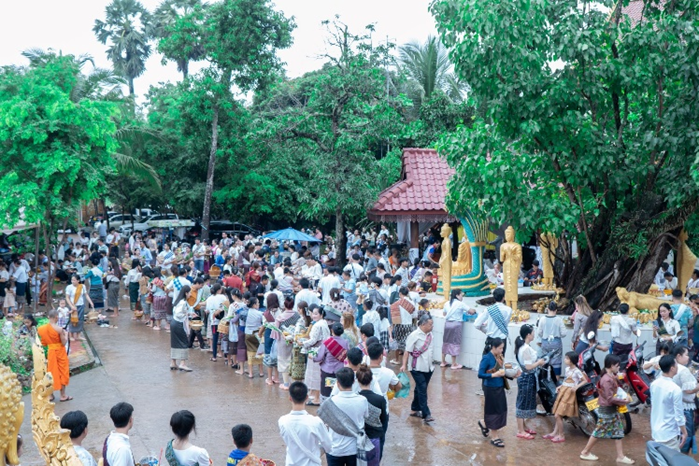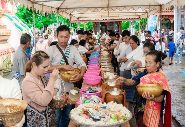 由于僧侣要在寺庙修行三个月,老挝的佛教信徒们在节日那天,男女老少身着传统服饰,聚集于附近寺庙礼佛施斋,一起布施、拜佛、洒水等,给僧侣送去食物、日用品等。直至今日,这个传统的佛教节日还是备受重视,节日氛围较为浓厚,今年的关门节,你去施斋了吗?